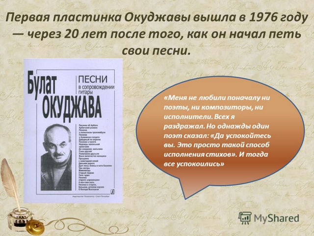 Сам Окуджава говорил, что «в 1956 году я родился как поэт».