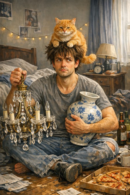 Доброе всем последнемартовское утро! Для тех, кто встал сегодня не с той ноги, запнувшись за свежий воздух, проистекающий из открытой форточки, да еще и упал, пытаясь во время свободного падения поймать любимую вазу, оказавшуюся под левой рукой широко взмахнувшей ладони и при этом правой ногой непроизвольно пнув вольношатавшегося в это самое время кота, совершившего впоследствии мертвую петлю Нестерова, зацепившегося в последний момент за ничего не подозревавшую люстру, с коей в следующий момент и совершили групповую мягкую посадку на голове только-что вставшего незадачливого хозяина )))... Именно это событие и стало в ближайшем последствии соавтором сего произведения. Карина маслом! ))) С ДОБРЫМ УТРОМ МУЗВИПЦЫ!