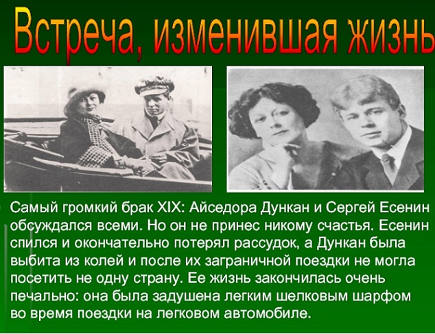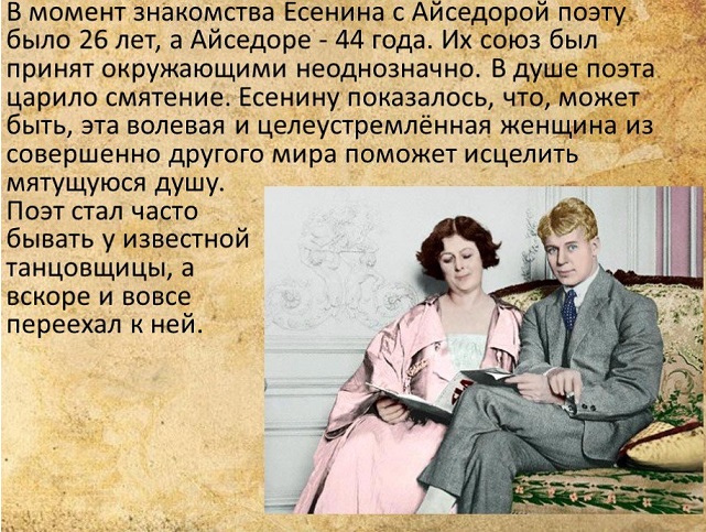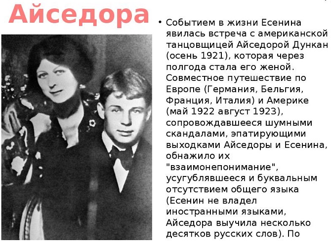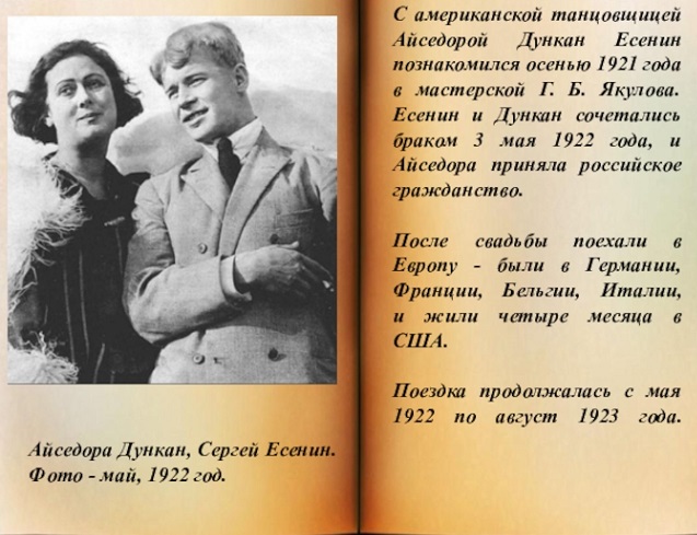 В 1922-1923 гг. вместе с американской танцовщицей А. Дункан, которая вскоре стала его женой, побывал в Германии, Франции, Италии, Бельгии, Канаде, США.