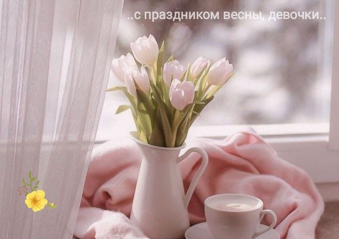 Девочки, дорогие, всех нас с праздником весны, очарования, красоты и женственности! В этот прекрасный весенний праздник хочется пожелать женского счастья и любви, мирного неба и море цветов! Пусть улыбка станет нашей постоянной спутницей, пусть радость поселится в нашем доме навсегда! Желаю чтоб нашу жизнь окружала большая любовь, чтоб мы всегда были красивы и очаровательны!!!